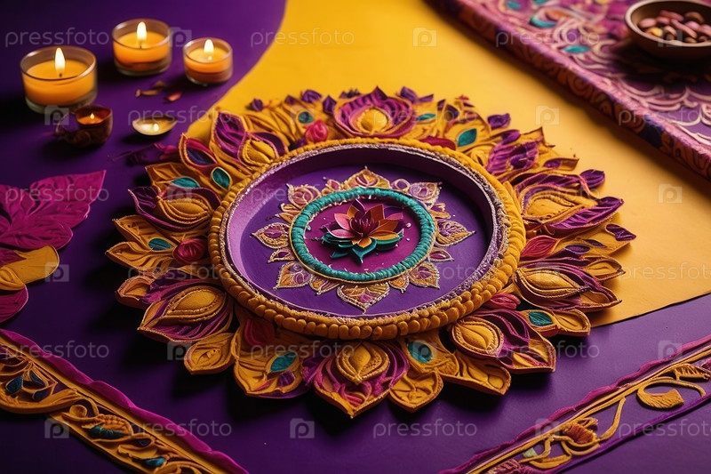 Традиционный красочный индийский фиолетово-желтый дизайн узора Фестиваль Дивали на фоне AI Generative