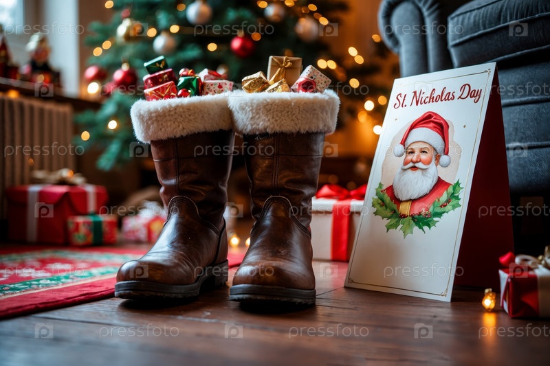 Открытка с праздничным баннером на православный праздник в честь Дня святого Николая AI Generative