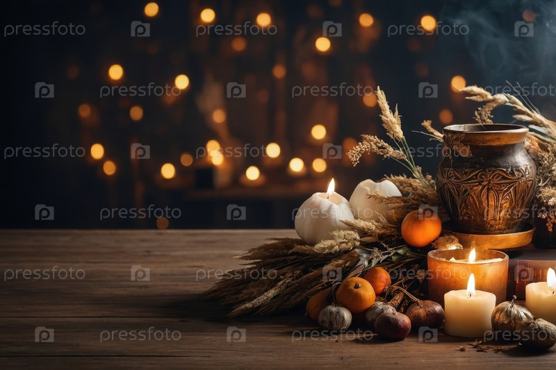 AI Generative Background with replica places dls text Карта Дня всех святых с горящими окончаниями