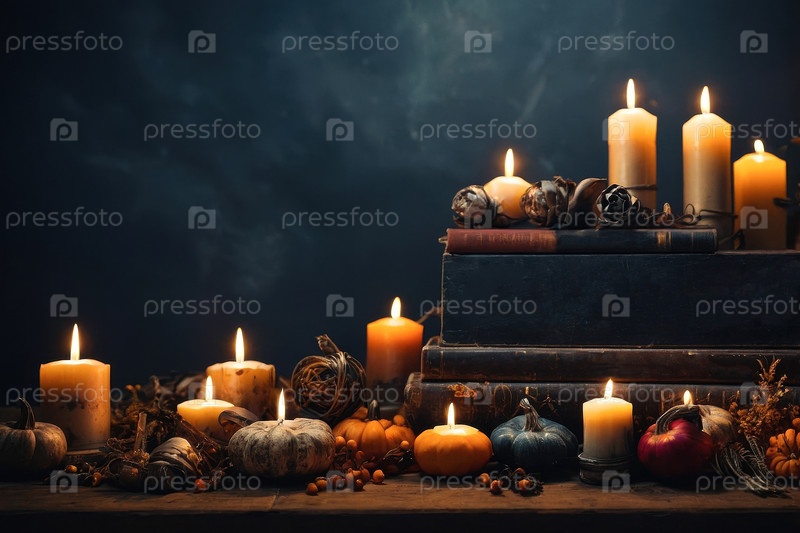 AI Generative Background with replica places dls text Карта Дня всех святых с горящими окончаниями