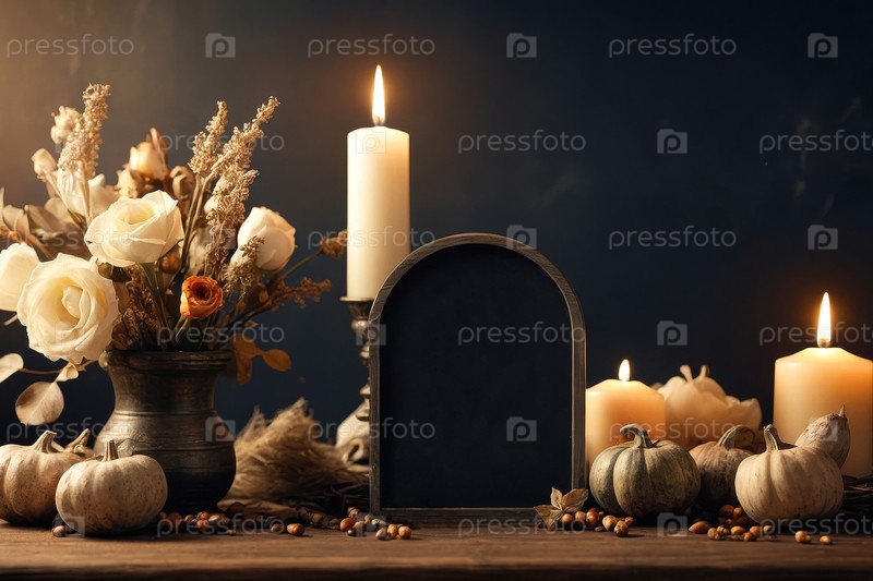 AI Generative Background with replica places dls text Карта Дня всех святых с горящими окончаниями