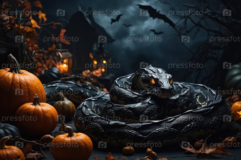 Черного хищника-змеи на темном ужасном рептилии Хэллоуина