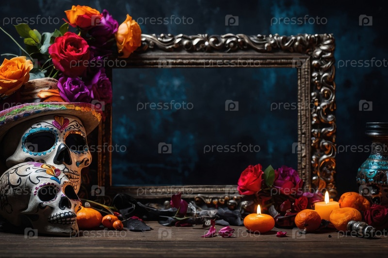День мертвых На заднем плане реплика космического черепа цветка болотной свечи