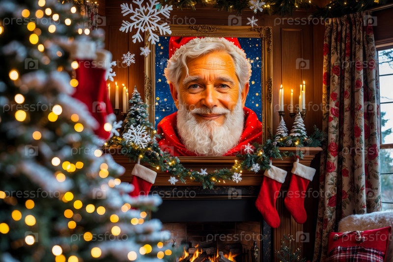 Генеративный портрет Святого Николая Чудотворца на украшенном камере в гостиной