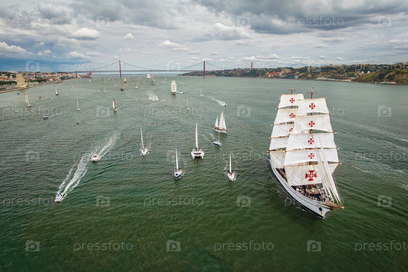 Суда плывут вдоль реки Таго.Лиссабон, Португалия Tall