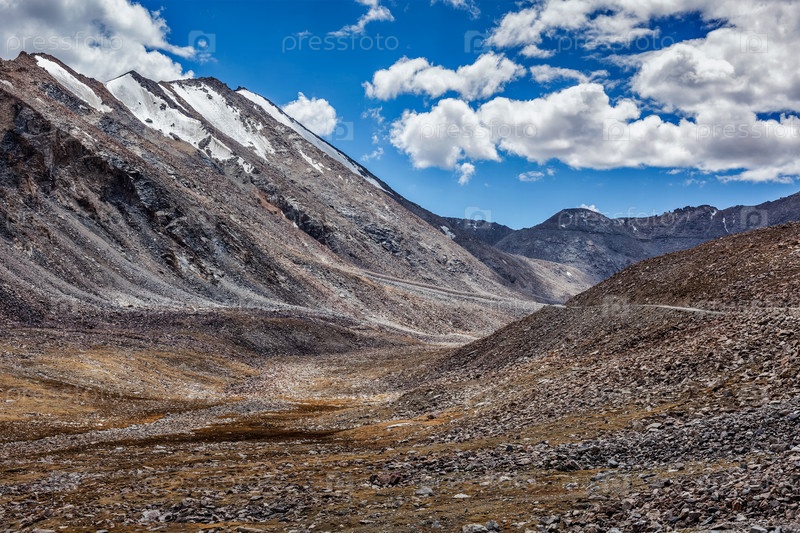 Высокая горная дорога в Гималаях недалеко от перевала Кардунг-Ла в Ладакхе, Индия