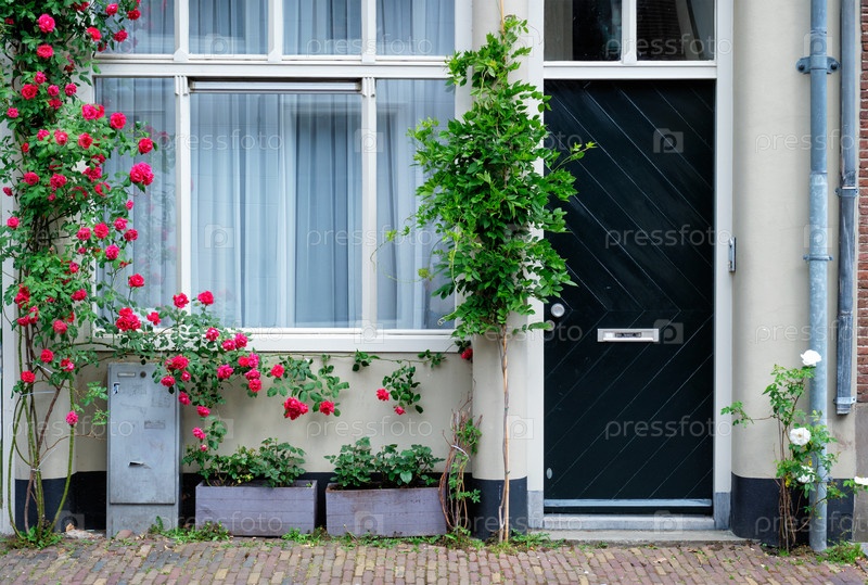 Дверь и окно старого дома в Утрехте, Нидерланды
