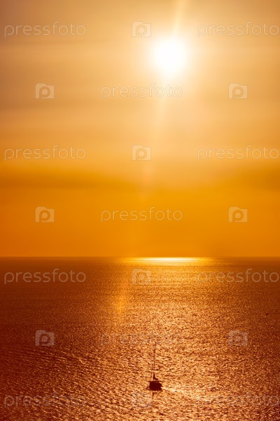 Силуэт яхт-лодок в Эгейском море на закате.Миконос, Греция