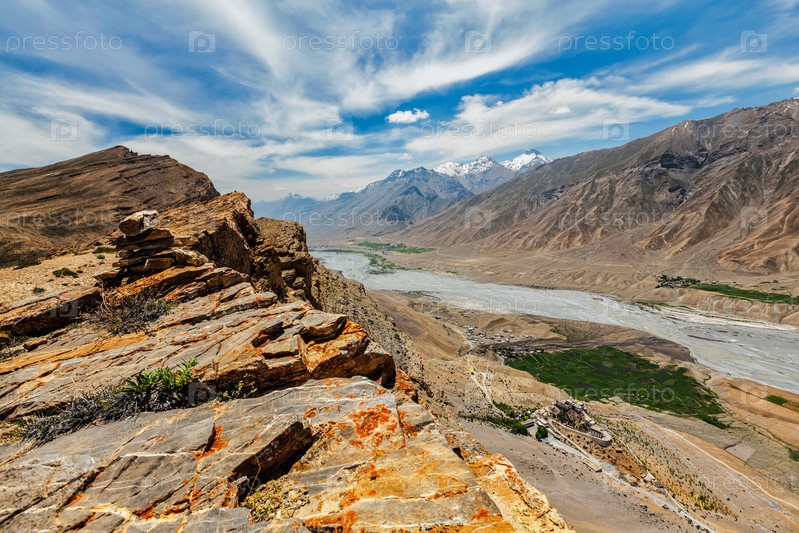 Вид с воздуха на долину Спити и Ки-Гомпу в Гималаях