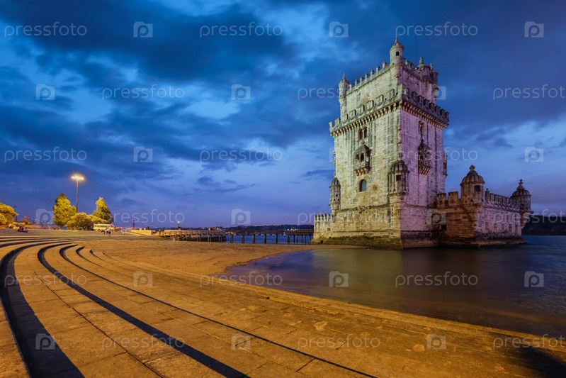Башня Белема на берегу реки Таго при закате.Лиссабон, Португалия