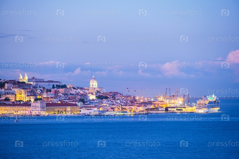 Вид на Лиссабон над рекой Таго вечером