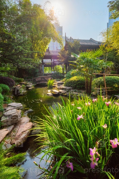 Садовый парк в Китае - Wangjiang Chinese Pavilion (Wanjiang Tower) Park.Ченгду, Сичуань, Китай