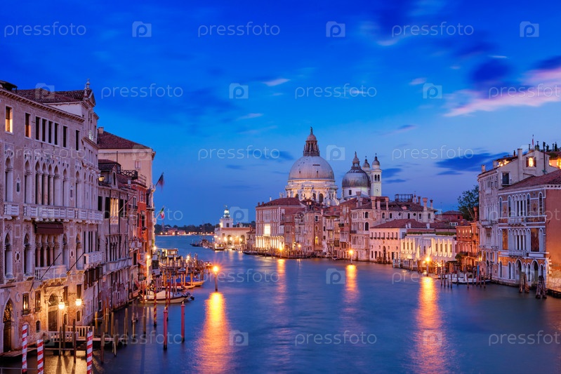 Вид на Большой канал Венеции и церковь Санта-Мария делла Салуте в вечернее время