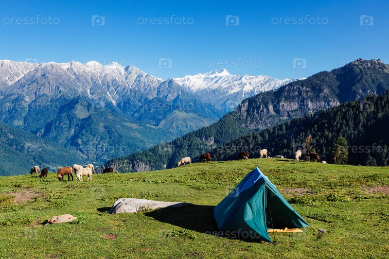 Палатка в Гималае с моими овцами. долина Куллу, Химачал-Прадеш, Индия