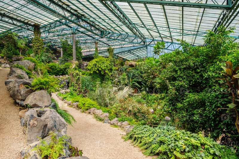 Внутренний вид холодного дома Estufa Fria - это теплица с садами, прудами, экзотическими растениями и деревьями в Лиссабоне, Португалия