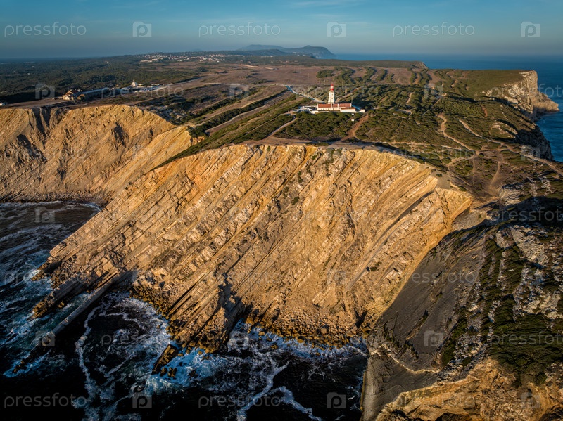 Вид с воздушного дрона маяка на мысе Эспихель в Атлантическом океане
