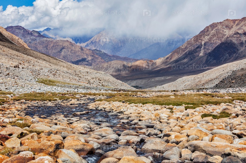 Горный ручей в Гималаях недалеко от перевала Кардунг-Ла Ладакх, Индия