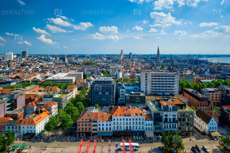 Вид из воздуха Антверпена с собором Богоматери в Антверпене, Бельгия