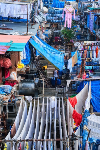 Dhobi Ghat - это лавр под открытым небом в Мумбаи, Индия, с мытьем на веревках