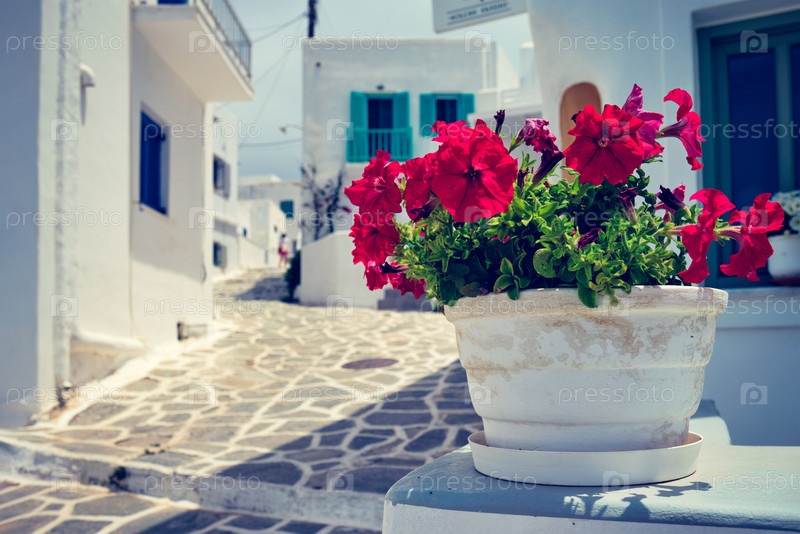 Живописная улица Наоузы на острове Парос, Греция