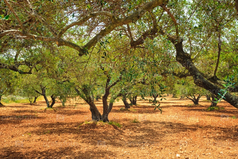 Оливковые деревья (Olea europaea) - это роща на Крите, Греция для производства оливкового масла