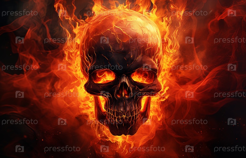 Ужасный и ужасный горящий череп на темном фоне. идеально подходит для Хэллоуина или фильмов ужасов