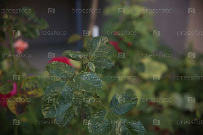 Зеленые листья розы со знаком болезни