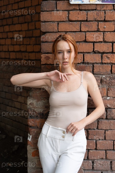 Портрет красивой молодой женщины с рыжими волосами в студии
