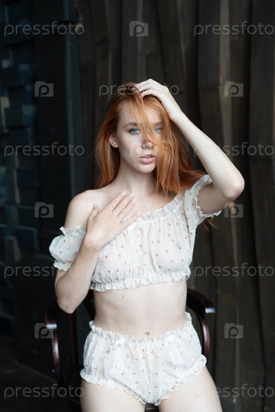 Портрет красивой молодой женщины с рыжими волосами в студии
