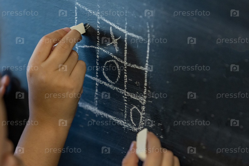 Россия. Санкт-Петербург. Детская игра в крестик-нотиках Доска. Россия. Санкт-Петербург. Дети играют в тиктак-то на доске