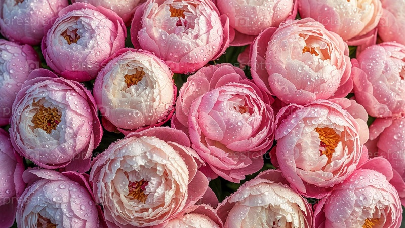 Многие нежные розовые пионы наложены вместе в фоне