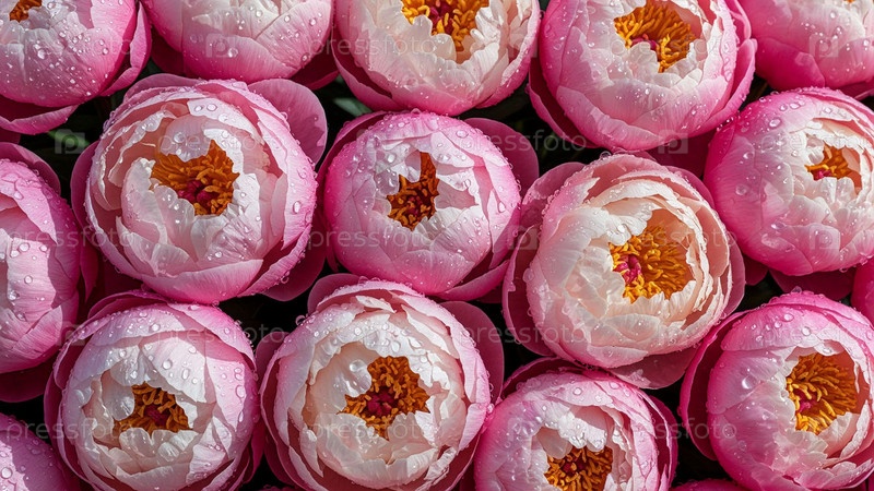 Розовые пионы в капле росы, фоновое изображение цветов