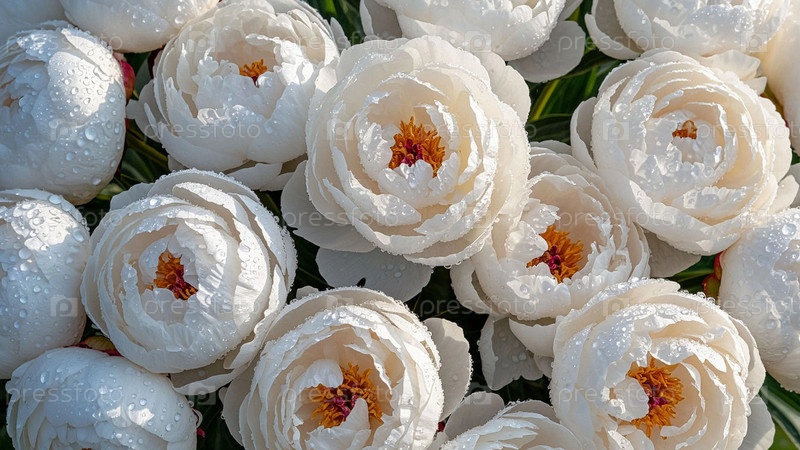 Бутоны пионья в капле росы, сложенные вместе на фоне