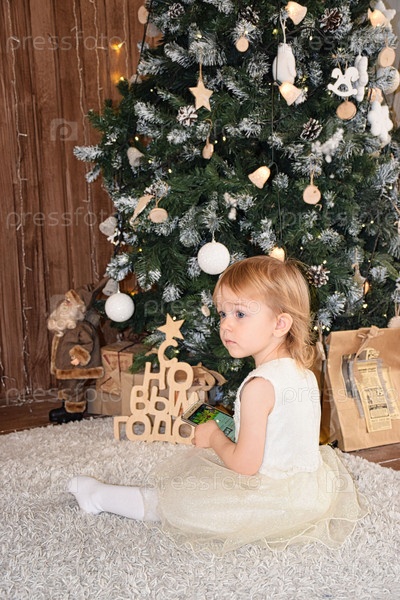 Маленькая девочка возле рождественской елки