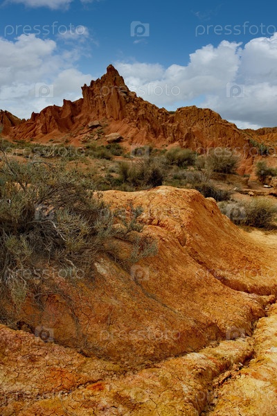 Живописный вид на знаменитую сказочную каньон, глиняные горные вершины которой окрашены в яркие цвета от желтого до красно-коричневого