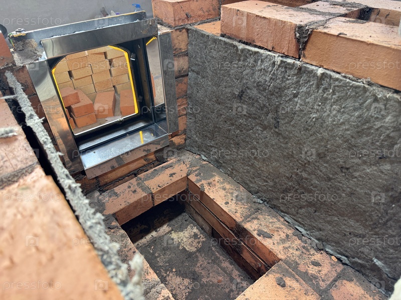Строительство нагревательной печи.Ядро печи и рамочная дверь видны