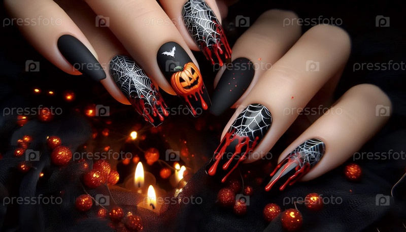 Ужасный дизайн ногтей на Хэллоуин создан Ai
