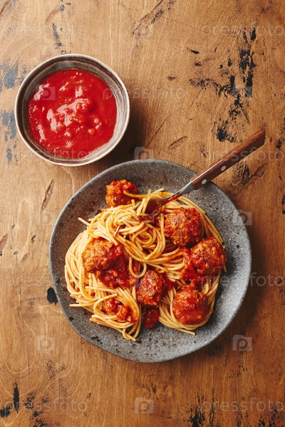 Спагетти-паста с мясными булочками и томатным соусом