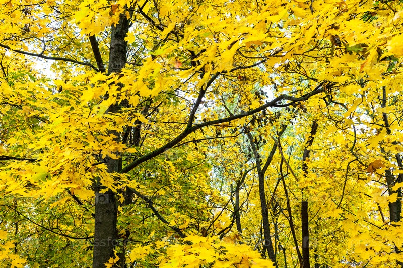 Роскошные желтые листья кленового дерева в городском парке