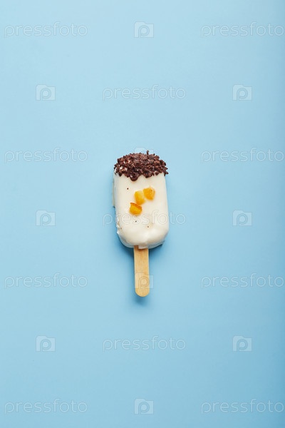 Мусовый десерт с фруктовыми ароматами в виде мороженого на синем фоне