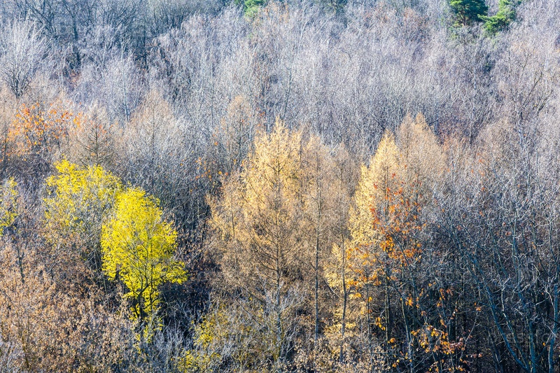 Красочный лес с голыми деревьями парка осенью
