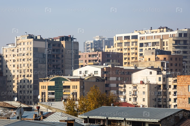 Вид на дома в Ереване в мокрый день