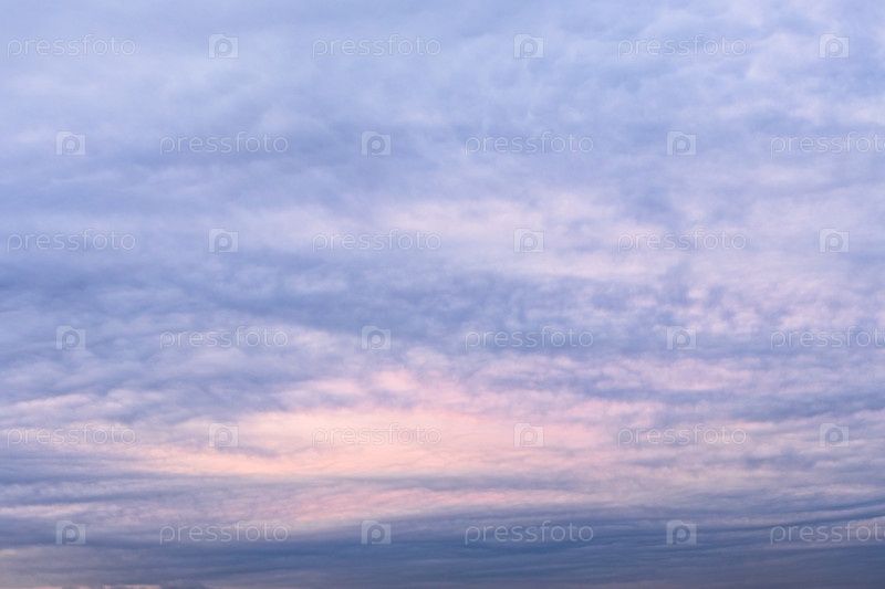 Голубое и розовое облачное небо в холодный осенний сумерки