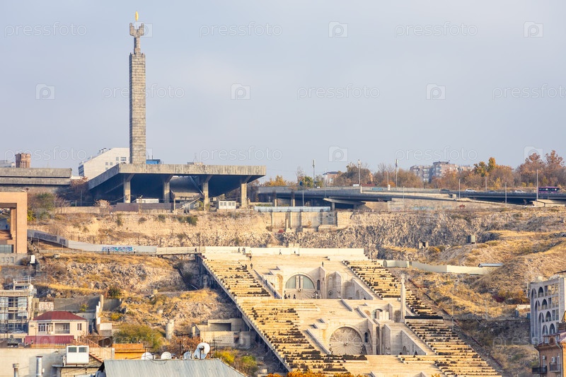 Вид на комплекс каскадов Еревана в пасмурное утро