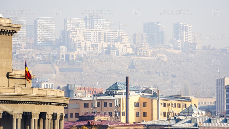 Вид на Оперный театр в Ереване в туманное утро