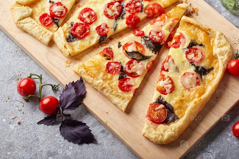 Роскошный торт с вишневыми помидорами, моцареллой и фиолетовым базиликом