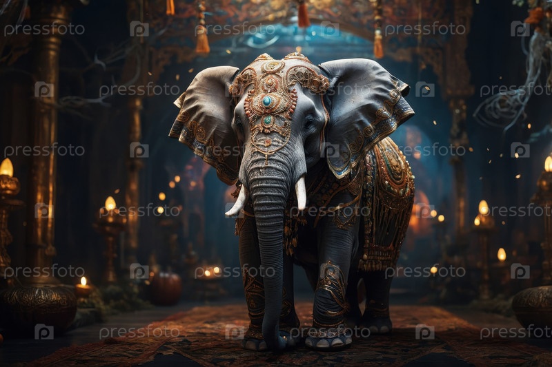 ИИ-генерирующее слоновое животное на темном пугающем фоне тыквы с украшением Хэллоуина