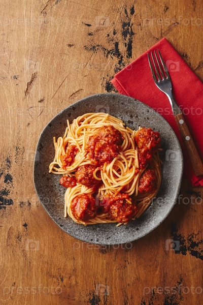 Спагетти-паста с мясными булочками и томатным соусом, вкусные домашние спагети