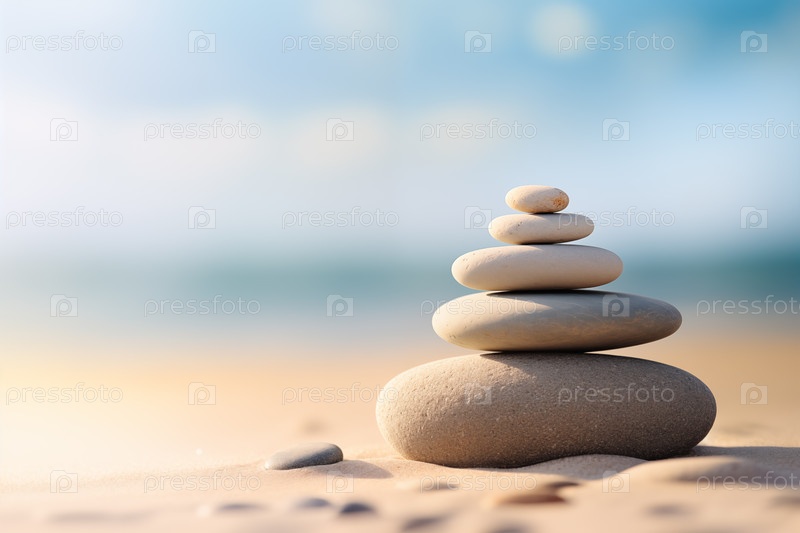 Камни Дзен складываются на песчаных волнах в минималистической обстановке для баланса и гармонии