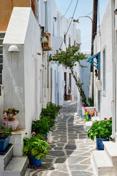 Живописная улица Наоузы на острове Парос, Греция